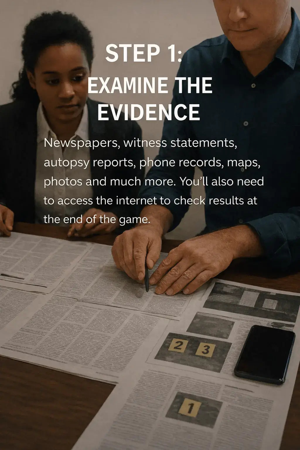 We recommend printing the evidence for a more immersive experience. All cases include a print-ready A4 version and can be printed in black and white. If you prefer, you can also play directly from your phone or computer using the PDFs.